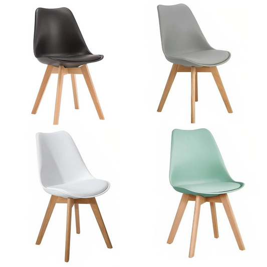 Pack 4 Sillas Tulip Negra Acolchadas - Base Madera