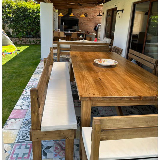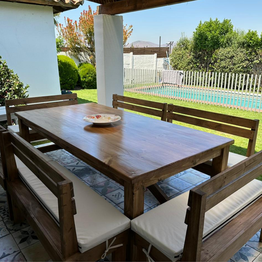 Comedor Terraza Madera con Banquetas - Modelo Campo 10 Personas