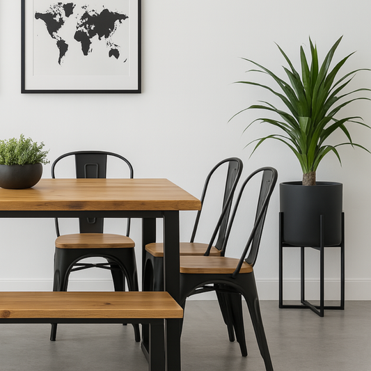 Comedor Industrial Madera 160x90 + 1 Banqueta + 4 Sillas Tolix
