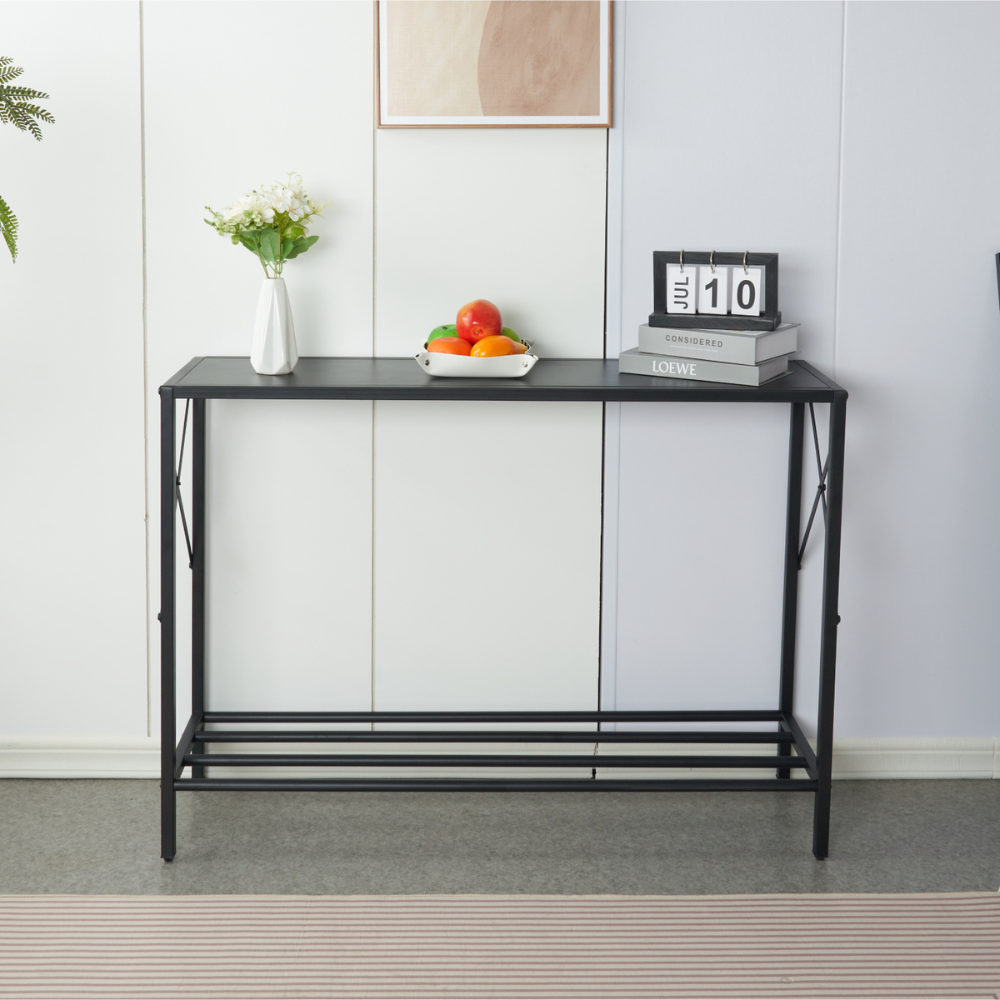 Arrimo moderno fabricado en MDF color negro con estructura metálica. Su diseño minimalista y elegante lo hace ideal para entradas, pasillos o livings, aportando estilo y funcionalidad. Perfecto para decorar con objetos, plantas o libros sin recargar el espacio.