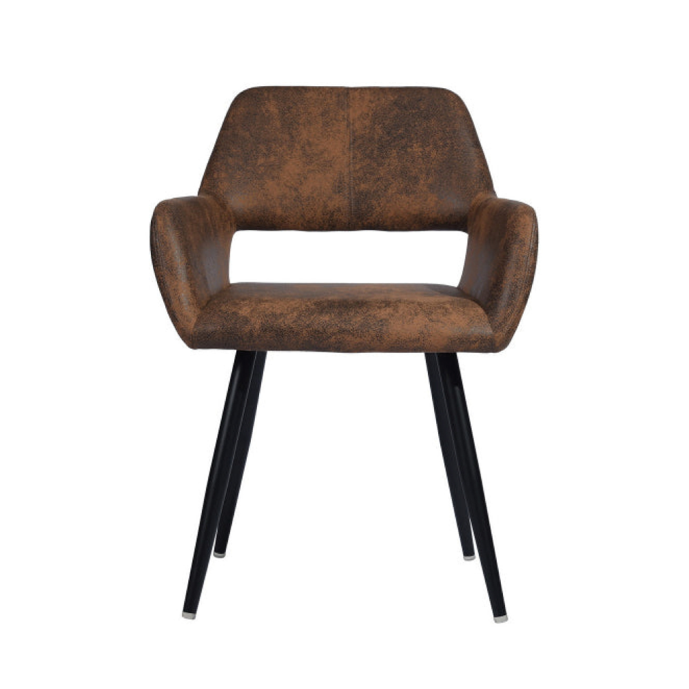 Material Sillas: Asiento totalmente acolchado y tapizado en ecocuero con base de metal color negro. Material Mesa: Cubierta de vidrio templado con base de metal color negro. |