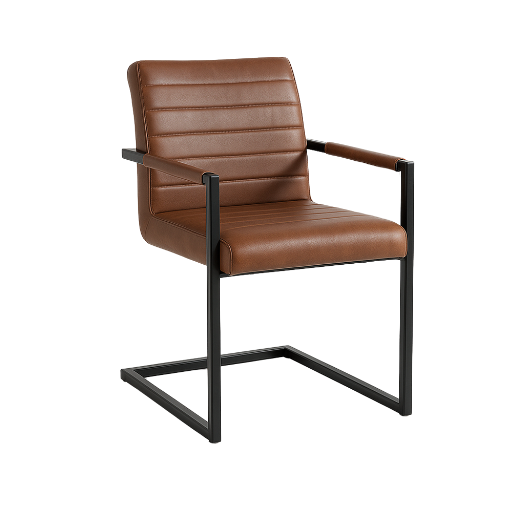 Juego de comedor para 2 personas con mesa redonda de vidrio templado y sillas tapizadas en ecocuero con base de metal. Ideal para espacios con diseño industrial.
