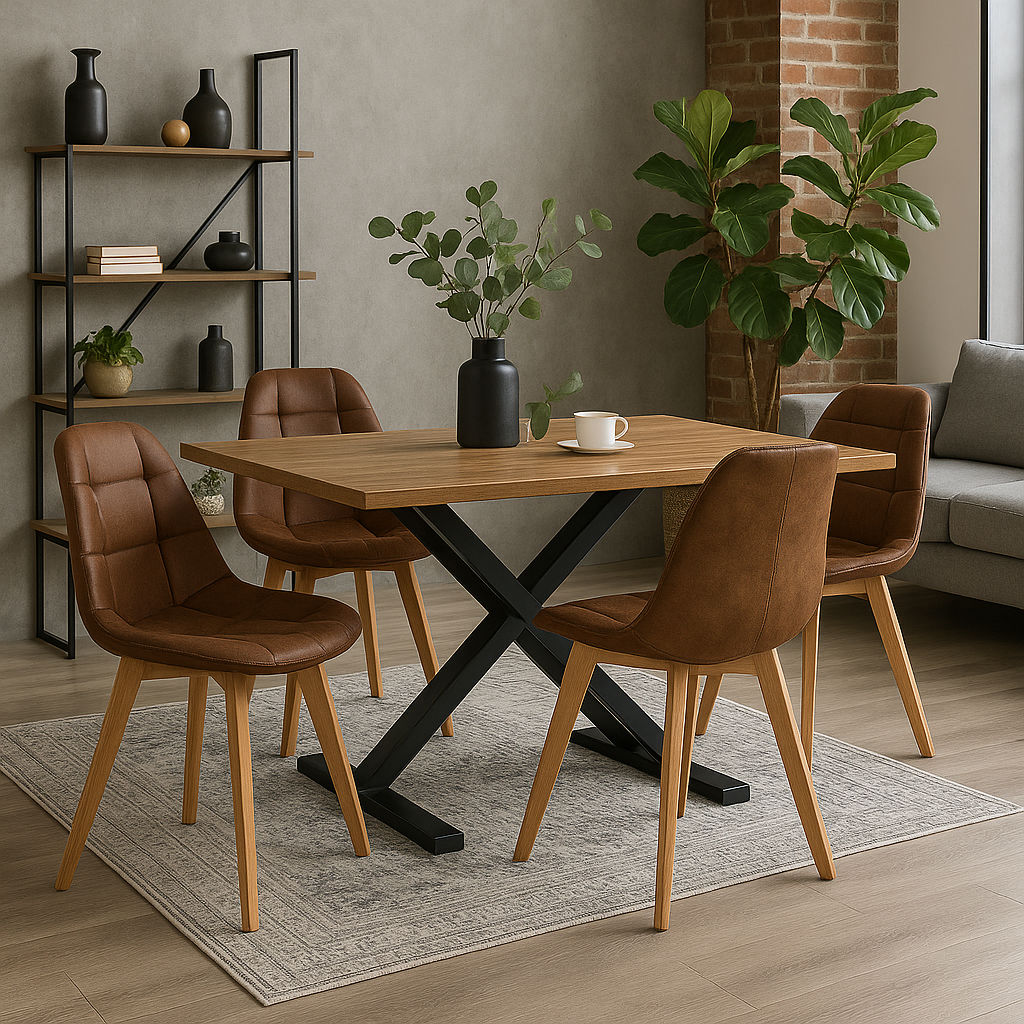 Pack 4 Sillas Capitone Vintage - Ecocuero Madera