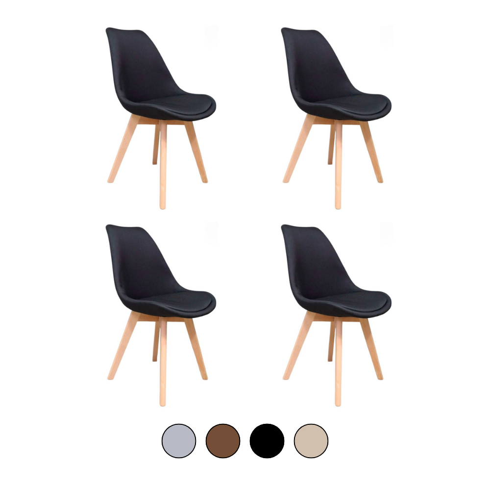 Pack 4 Sillas Tulip Lino - Acolchadas Base Madera