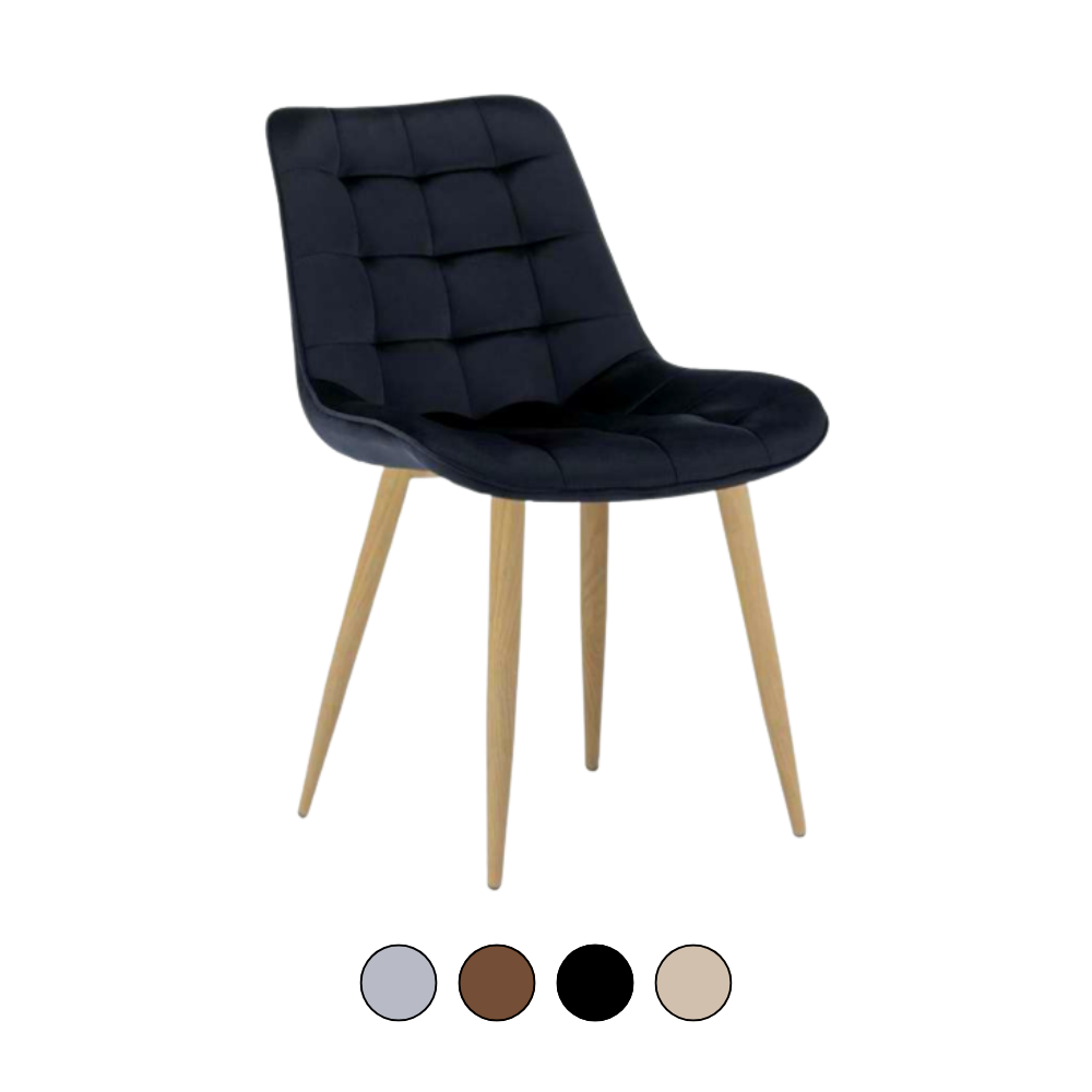La clásica silla capitone convertida en diseño velvet. Aquí tenemos esta combinación única que une el diseño minimalista con la suavidad de las sillas velvet. Es una silla totalmente acolchada, la cual se destaca por su suave terciopelo y base de metal que simula madera.